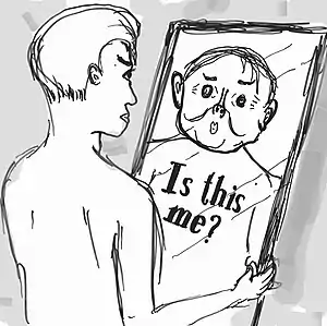 | وقتی بیمار به آینه نگاه میکند و تصوری که از خودش دارد. | |