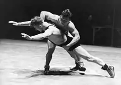 ![]() Edgar Puusepp (top) wrestling Fritz Schäferig in Berlin in 1939 | |