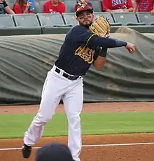 ![]() Alvarez with the New Orleans Baby Cakes in 2019 | |||