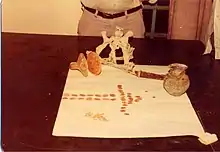 یکی از کشفیات مهم این محوطه تاریخی، حلقه قدرت زرینی است که در دست چپ متوفی قرار داده شدهاست. این حلقه دارای دسته استوانه ای هلالی شکل تو خالی است که دو انتهای آن به دو صفحه بیضی شکل ختم میشود. قسمت داخلی این صفحهها بهطور قرینه با نقش دو شیر بالدار که در دو طرف درخت مقدس ایستادهاند تزیین شدهاست. دور تا دور نقوش نقش گیس باف دیده میشود. در زیر پای شیرها سه ردیف نقش به صورت طاق هلالی شکل کنده شده و بر روی دسته، شیارهایی ایجاد شده که انتهای آنها به یک گل دوازده پر در قسمت بیرونیِ دو صفحه، ختم میشود.[13] این حلقه دارای کتیبه ای به خط میخی عیلامی در قسمت دسته است که ترجمه آن کیدین هوتران پسر کورولوش است.[14]