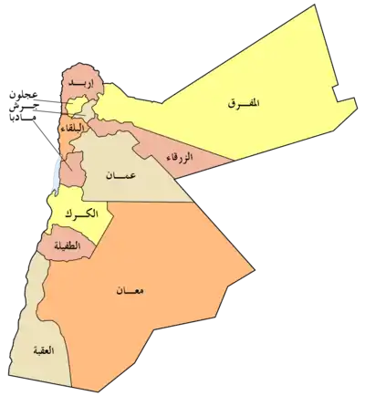 کشور اردن به دوازده استان (به عربی: محافظة) تقسیم میشود: