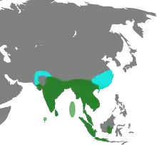 | مناطق اقامت دایمی به رنگ سبز هستند و مناطقی که در تابستان به سر میبرند به رنگ آبی. | |