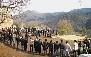 دو علم در میان عزاداران آورده شدهاند (روستای الهرد آذر ۱۳۹۰)