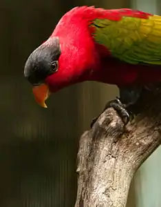 The Lorius domicella, or purple-naped lory, from Indonesia.