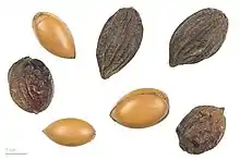 میوهٔ آرگان، دارای یک بذر کوچک و روغنی است؛ و بذر درخت آرگان از دل همین میوه به دست میآید. سختترین کار در طول فرایند خارج کردن روغن آرگان، خارج کردن بذر آرگان از دل میوه است،