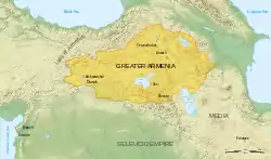 | پایتخت | آرماویر (۳۳۱–۲۱۰ قبل از میلاد) یروانداشات (۲۱۰–۱۷۶ قبل از میلاد) آرتاشات (۱۷۶–۷۷ قبل از میلاد; ۶۹–۱۲۰ پس از میلاد) تیگراناکرت (۷۷ قبل از میلاد–۶۹ پس از میلاد) واغارشاپات (۱۲۰–۳۳۰) دوین (۳۳۶–۴۲۸) | ||||||||||