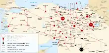 Armenian Genocide: map of massacre locations and deportation and extermination centers.
