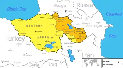 The Six Armenian vilayets (provinces) of the Ottoman Empire were defined as Western Armenia.
