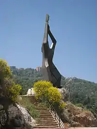«بنای یادبود به یاد آورنده پنجاهمین سالگرد نسلکشی ارمنیها که با همکاری تمامی جامعه ارمنی در لبنان برای جشن تجدید حیات ملت ارمنی و اظهار قدردانی از کشورمان لبنان در ۲۴ آوریل ۱۹۶۹ میلادی بر پا شدهاست.»