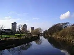 ![]() Skyline of Irvine on the banks of the River Irvine in Irvine Town Centre | |