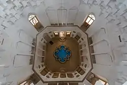 طبقه اول بنا که به صورت هشت ضلعی بر روی طبقه هم کف ساخته شده، دارای فضای کمتری است و چند اطاقک در آن ساخته شدهاست. همچنین سه طبقه دیگر بنا به صورت نمادی ساخته شده و صرفاً به دلیل فرمپذیری بنا میباشد.