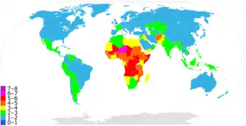 نقشه ی نرخباروری کشورها و مناطق جهان