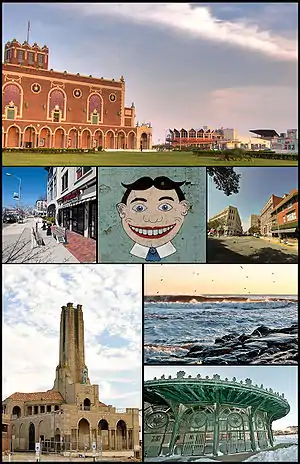 ![]() From Left: Asbury Park Convention Hall (image courtesy of Dave Frey), Main Street, Tillie, Cookman Ave, Old Heating Plant, Philadelphia Toboggan Company Carousel | |