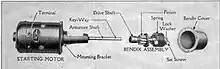 استارت پوسته گیربکس سوار یا انتهای موتور وصل میشود و از طریق اتصال چرخ دنده خود استارت با چرخ دنده تعبیه شده روی فلایویل یا چرخ طیار موتور را میچرخاند. در هنگام استارت زدن سلنوئید یا همان اتوماتیک استارت دنده استارت را به سمت دنده فلایویل میراند، در داخل اتوماتیک استارت یک کنتاکتور ساده وجود دارد که همزمان با حرکت دنده استارت ولتاژ باتری را به آرمیچر وصل میکند؛ بنابراین بلافاصله بعد از قرار گرفتن دنده استارت روی دنده فلایویل استارت میچرخد و موتور را میچرخاند پس از قطع شدن برق استارت توسط فشار فنر دنده به عقب آمده و ارتباط آن با دنده روی فلایویل قطع میشود.