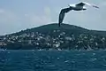 نمایی از مرغ دریایی؛ که در پسزمینه آن جزیره بورگازآدا دیده میشود.
