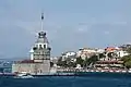 نمایی از برج دختر در یک جزیره دور از ساحل آسیایی در ورودی جنوبی تنگه بسفر در استانبول