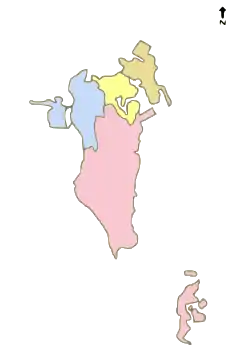 عاصمه (استان پایتخت)، جنوبیه، شمالیه، وسطی و محرق.