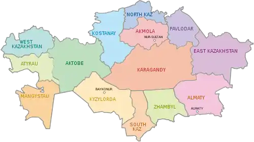 قزاقستان دارای ۱۴ استان و ۳ کلانشهر است که بدین قرار است: