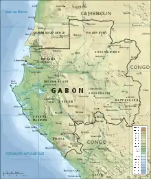 کشور گابن در غرب آفریقای مرکزی، که در کنار خلیج گینه و در سواحل شرقی اقیانوس اطلس قرار گرفته است و دارای ۹ استان میباشد: