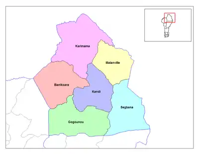 بخش آلیبوری بزرگترین و شمالیترین بخش در کشور بنین است. مساحت آن 25,683 km² و جمعیت آن در سرشماری ۲۰۰۳ برابر با ۳۵۵٬۹۵۰ نفر اعلام شدهاست. بخش آلیبوری به شش کومون تقسیم میگردد که مرکز این کومونها عبارتند از سگبانا، مالانویله، کندی، بانیکورا، گوگونو و کاریماما.