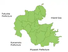 Wikipedia contributors، "Ōita Prefecture،" Wikipedia، The Free Encyclopedia، http://en.wikipedia.org/w/index.php?title=Ōita_Prefecture&oldid=231253211 (accessed September ۷، ۲۰۰۸).