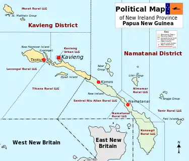 - مشارکتکنندگان ویکیپدیا. «New Ireland Province». در دانشنامهٔ ویکیپدیای انگلیسی، بازبینیشده در ۱۷ سپتامبر ۲۰۱۲.