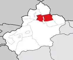 ![]() نقشه منطقه خودمختار سینکیانگ اویغور و موقعیت استان سانجی | |