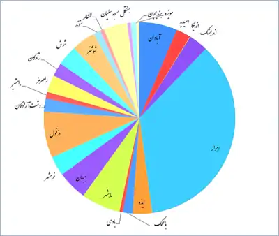| ۲۸ | کرخه | الوان | ۱۳۹۹ | شوش | ۶٬۸۶۰ نفر | ۶۹٬۳۳۱ نفر | عربی |