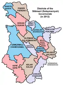 ![]() جایگاه استان سلیمانیه در اقلیم کردستان عراق | |