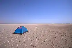 کویر نمک در شرق قم میباشد که همان دریای خشک شده قدیمی است که به تدریج آب آنها تبخیر شده و املاح در آنها رسوب نمودهاست. این کویر میان خراسان و سیستان و قم و کاشان و یزد واقع است و در بعضی نقاط آن رشتههای منفردی از کوههای اطراف پیش آمده تشکیل نواحی کوهستانی خیلی خشک میدهد جز در فصل زمستان آبی که در این کویر نمیتوان یافت. در موقع تابستان به جای آب ورقههای نمک جلب نظر میکند و چون هوا در این ناحیه خیلی خشک است اختلاف درجه حرارت در آن زیاد است. مثلاً در روز حرارت به ۷۰ درجه و شب تا صفر درجه تنزل میکند. به همین علت سنگ کوههای آن بر اثر اختلاف درجه هوا متلاشی شده به صورت شن و سنگریزه درآمده است و در موقع وزش باد تودههای عظیم شن مانند امواج دریا به حرکت درآمده و تشکیل تپهها و ماهورهای موقتی میدهد که گاهی ارتفاع بعضی از آنها به چهل متر و طولش به چند کیلومتر میرسد و به همین علت به آنها ریگ روان میگویند و اغلب سبب گمراهی و هلاکت مسافر میشود. اطراف کویر در بعضی از روزها بر اثر بدهای شدید ذرات نمک مخلوط شن و ماسه به هوا برده و این ناحیه را تیره و تار میکند، کویر لوت در جنوب شرقی کویر نمک قرار دارد.[13]