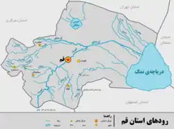 - «جغرافیای طبیعی استان قم». استانداری قم. ۴ شهریور ۱۳۹۲. بایگانیشده از اصلی در ۲۹ ژوئیه ۲۰۱۴. دریافتشده در ۲۶ آگوست ۲۰۱۳.