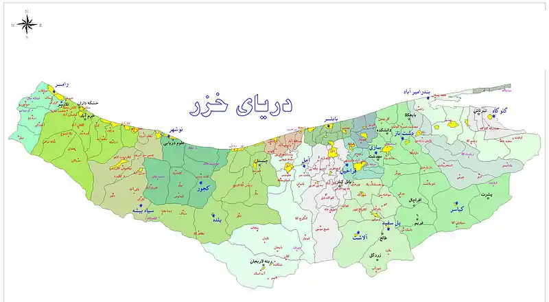 | نقشه استان مازندران به تفکیک شهرستان |