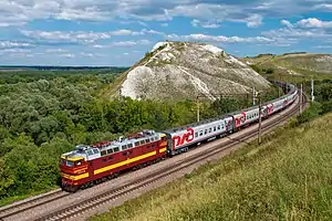 لوکوموتیو ChS4t راهآهن روسیه در حال حمل مسافران در استان ورونژ