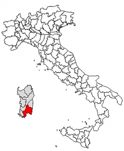 ![]() Map highlighting the location of the province of Cagliari in Italy | |