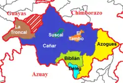 ![]() Cantons of Cañar Province | |