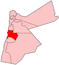 از شمال استان مادبا، از جنوب استان طفیلة، از مغرب الأغوار الجنوبیة، و از سمت شمال شرقی به منطقهٔ القطرانه محدود میگردد.