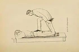 ![]() فن OMT برای درمان ناتوانی جنسی در ۱۸۹۸ میلادی. از راهنمای Osteophathy Complete. | |