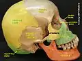 ![]() دید کناری از استخوانهای جمجمهٔ انسان | |