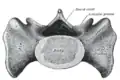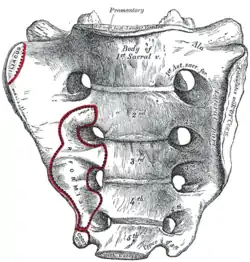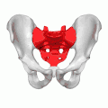 - قاعده استخوان خاجی که در بالا قرار دارد، پهن بوده و توسط سطح فوقانی مهرهٔ S1 تشکیل میشود.