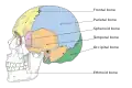 ![]() جمجمه انسان (استخوان پسسری در پایین سمت راست قرار دارد). | |