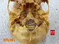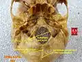 در این وضعیت Tubercle Jugularها بهتر دیده میشود که به صورت برآمدگیهای بیضی شکل هستند که در باالی سوراخ هایپوگلوس قرار داشته و آن را از باال میپوشاند. در زیر Jugular Tubercle کانال Hypoglossal دیده میشود که این کانال در هر دو نما قابل رویت است و محل عبور زوج ۱۲ مغزی است. در عقب Tubercle Jugular یک ناودان کم عمقی وجود دارد که زوجهای ۹ مغزی)glossopharengeal ،)۱۱ مغزی)vagus)و ۱۱ مغزی)Accessory)از آن عبور میکنند.
