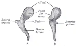 ![]() Left malleus. A. From behind. B. From within. | |