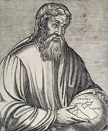 ![]() استرابو جغرافیدان یونان باستان در یک تصویر حکاکی شده متعلق به قرن شانزدهم میلادی | |
