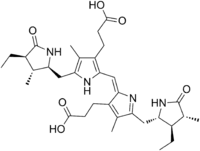 3-[(2E)-2-[ [3-(2-Carboxyethyl)-5- [(4-ethyl-3-methyl-5-oxo-pyrrolidin-2-yl) methyl]-4-methyl-1H-pyrrol-2-yl]methylidene]-5- [(3-ethyl-4-methyl-5-oxo-pyrrolidin-2-yl) methyl]-4-methyl-pyrrol-3-yl]propanoic acid | |