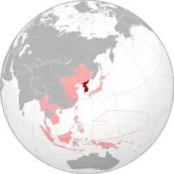 ![]() Korea (dark red) within the امپراتوری ژاپن (light red) at its greatest extent in 1942 | |||||||||||||