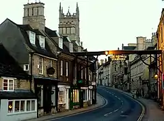![]() The view from St Mary's Bridge looking up the hill towards the George Hotel | |