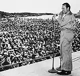 استندآپ کمدی (به انگلیسی: Stand-up comedy) یا شوخیپردازی روی صحنه[1] نوعی از کمدی است که در آن، اجراکننده بدون وجود دیوار چهارم و بهصورت مستقیم با شنوندگان صحبت میکند. این کمدی معمولاً توسط یک نفر اجرا میشود. در این نمایش، کمدیگر با اجرای سریعی از داستانگویی، لطیفه و شوخیهای کوتاه و گذرا و بداههسازیهایی که جمع تماشاگران پذیرای آنها باشند، به انتقال مضامین میپردازد. اجراکننده معمولاً سرنوشت مسائل و معضلاتی را که بهطور بسیار مهم و جدی اجتماع کلی را درگیر خود ساخته به چالش میکشد، به این امید که باعث شگفتی و خندهٔ تماشاگران شود و مشکلات اجتماع را با لبخند تبدیل به آرامش کند.