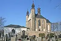 در حدود سال ۱۴۰۰ میلادی، کلیسایی با معماری گوتیک در مرکز این گورستان بنا نهاده شد، و استخوانهای یافت شده در گورهای دسته جمعی —که در هنگام ساخت کلیسا کشف شده بودند— در سرداب و همچنین شیروانی کلیسا به امانت سپرده شدند. بر طبق روایات، بعد از سال ۱۵۱۱ استخوانهای انباشته شده توسط یک راهب نیمهکور به صورتی مرتب در کلیسا چیده شد.