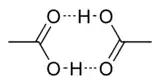 ساختار کریستالی اسید استیک[5] نشان میدهد که مولکولها به صورت دی مر جفت میشوند که پیوندهای هیدروژنی آنها را به هم متصل کردهاست. دی مرها را میتوان در بخار ۱۲۰درجه سانتی گراد شناسایی کرد. این حالت ممکن است در فاز مایع اسید استیک خالص نیز رخ دهد اما در صورت وجود آب، به سرعت به هم میریزد. سایر اسیدهای کربوکسیلیک پایینتر نیز این رفتار دیمرسازی را دارند.