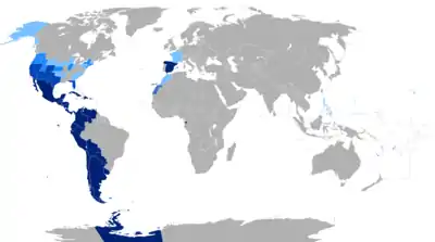 ملی و رسمیکشورهای مستقلی که اسپانیایی زبان ملی بر اساس قانون است.